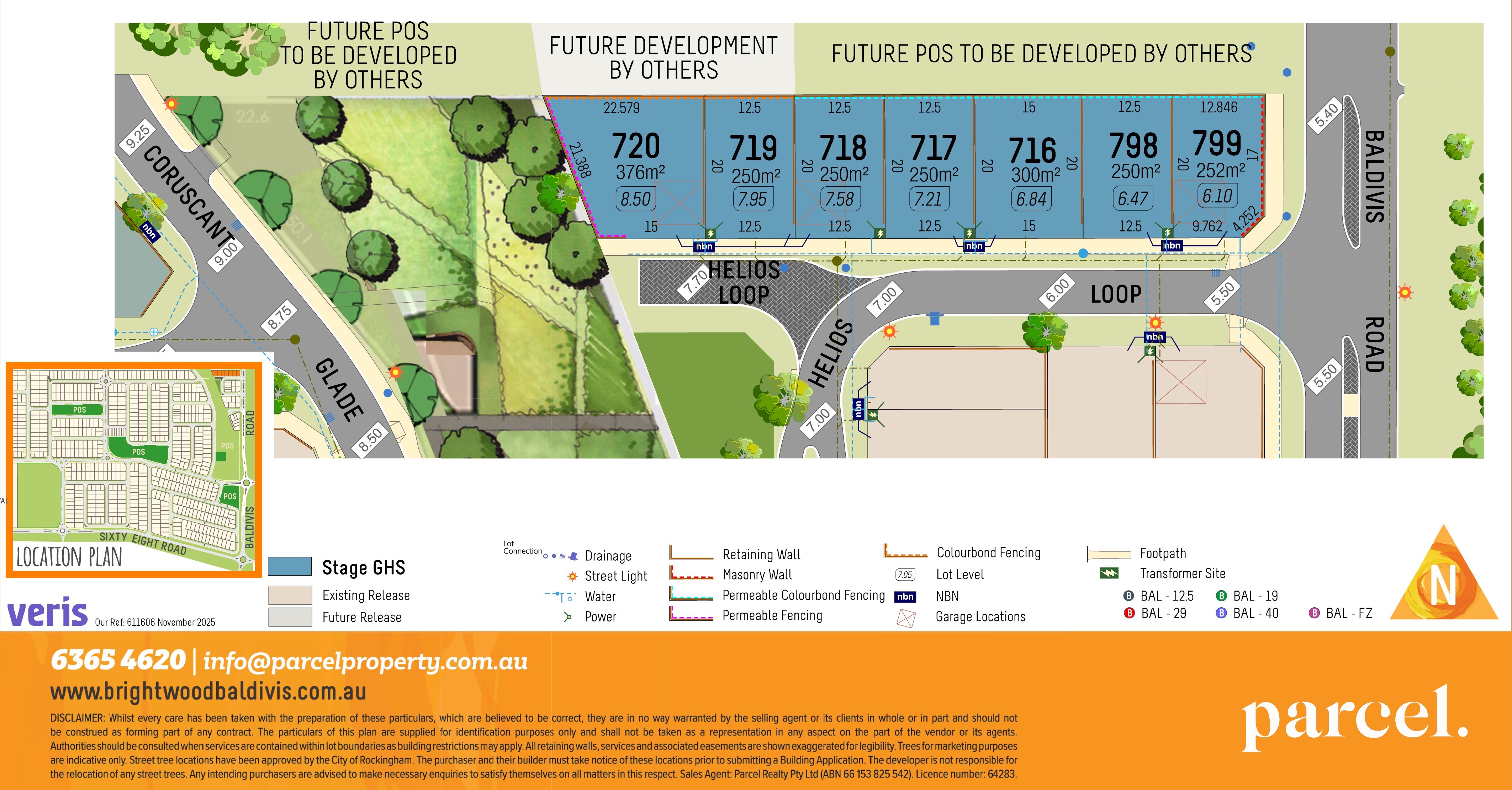 *DISCLAIMER - Site Class: The rating on class/footings in this Price List applies only if the Buyer is building a single-storey full masonry residential construction, based on AS2870 (2011), and gets their site classification report from Structerre Consulting Engineers. If the Buyer is constructing a different type of residence or uses a different consulting engineer for the report, the Seller is not responsible for the information. General: While we aim for information accuracy, it is not guaranteed by the selling agent. Prospective buyers are advised to verify all details and not view this as a contractual commitment. All measurements are subject to survey. Full retail prices are as shown. Promotional prices do not include incentives like land rebates or builder incentives. Rebates are specific to certain lots and are paid at settlement. Sales Agent: Parcel Realty Pty Ltd (ABN 66 153 825 542). Licence number: 64283.